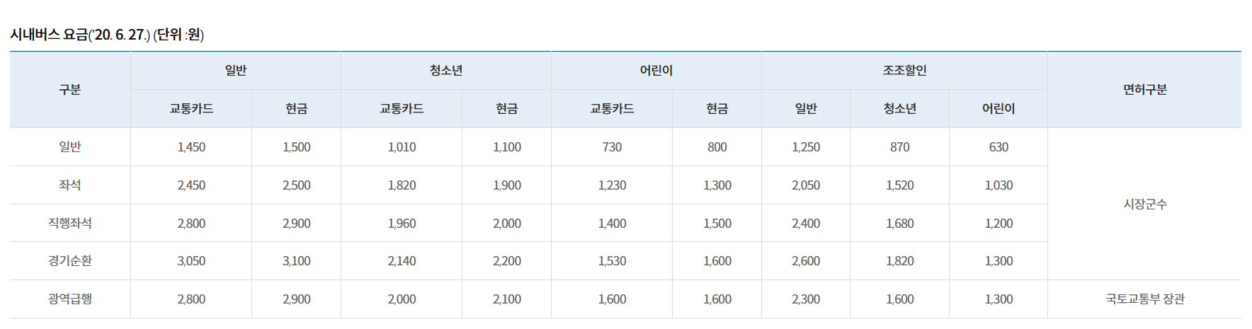 광역버스 요금 및 정책