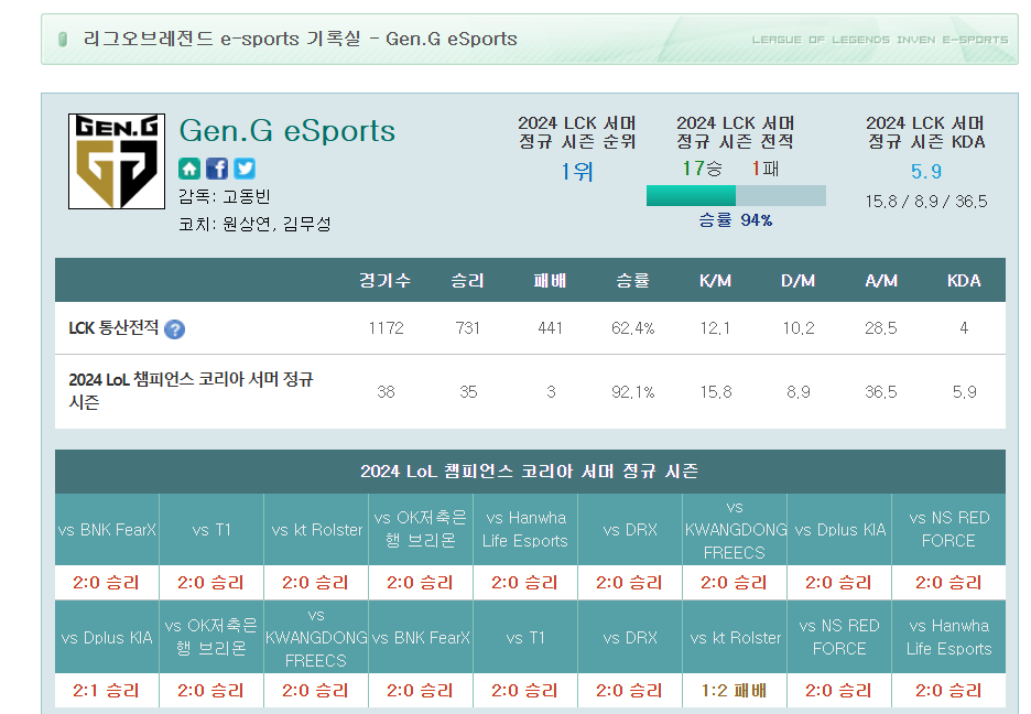 - 2024 LCK 성적: 스프링 3위, 서머 준우승