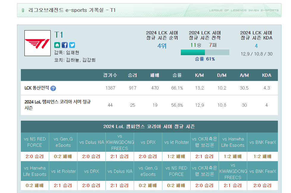 기타 팀 정보는 LCK 공식 홈페이지에서 확인 가능합니다.