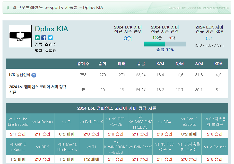 기타 팀 정보는 LCK 공식 홈페이지에서 확인 가능합니다.