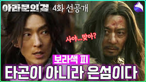 아라문의 검이 항저우 아시안 게임 중계방송으로 토요일 5,6화를 연속방영합니다. 지난 3,4화에서 탄야와 은섬이 극적으로 재회하게 되고, 늘 적대적이던 타곤과 태알하에게는 태알하의 계략으로 충신 무백이 죽음을 맞고 그들의 아들 아록은 납치를 당하게 되면서 타곤과 태알하는 다시 합심하는 모습을 보입니다. 아들을 구하기 위해 타곤은 그토록 숨기고 싶었던 보라색 피까지 보이며 적에게 달려듭니다. 다음에서 3,4화를 좀 더 상세히 요약 리뷰해 보고 축구 중계로 연속방영하는 5,6화를 미리 보겠습니다.