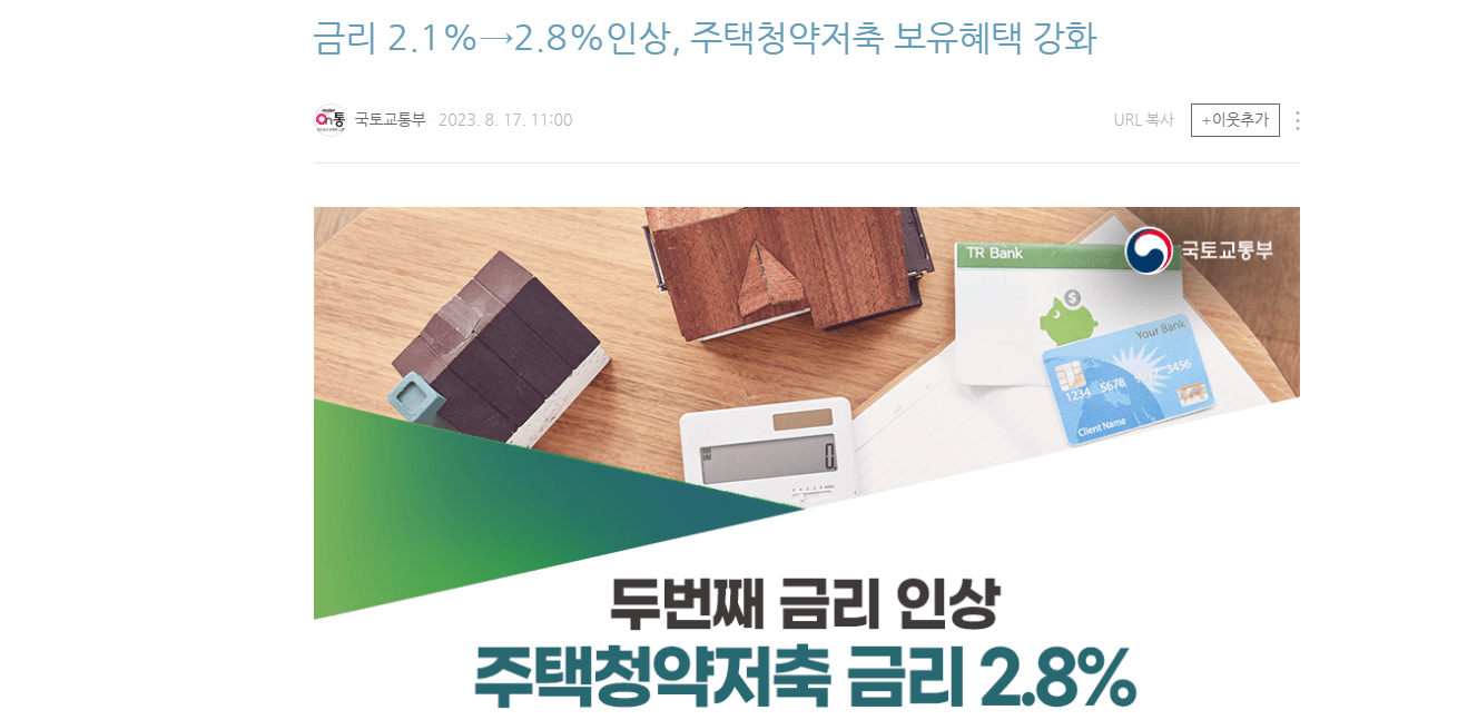 국토교통부에서 국민들의 내 집 마련을 지원하기 위해 그동안 금리와 그 외 혜택이 까다로웠던 청약통장 혜택을 대폭 강화한다고 합니다. 2023년 주택청약통장 금리인상과 가산점(가점)혜택을 아래에서 자세히 알려드리겠습니다.