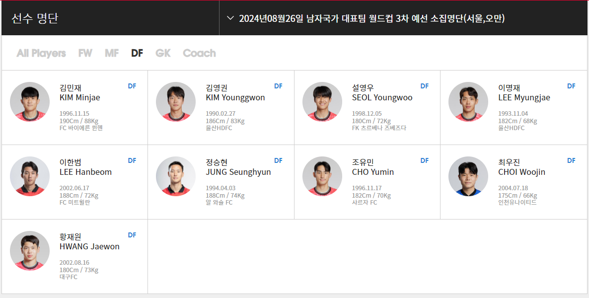 이번 명단에는 총 26명이 선발되었으며, 각 포지션에서 균형 잡힌 라인업이 구성되었습니다.